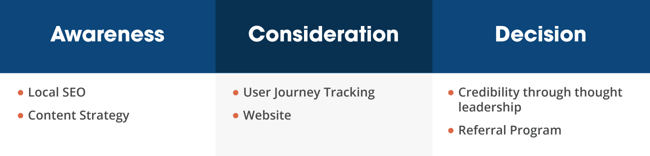 KPIs should complement and support the program goals mentioned earlier. You can view them as markers that can demonstrate that your activities are helping your bank mortgage marketing program grow and moving toward meeting those goals. Additionally, they help track the impact of time and resources invested in building your mortgage marketing machine.